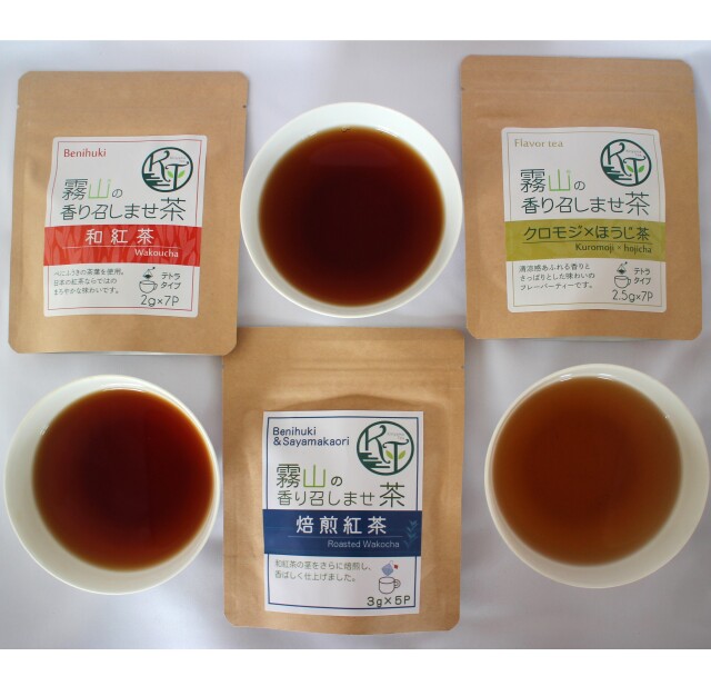 香りで気分をリフレッシュしたい方向けに、「霧山の香り召しませ茶セット(3種)」をご用意いたしました。使いやすいテトラティーパックタイプです。